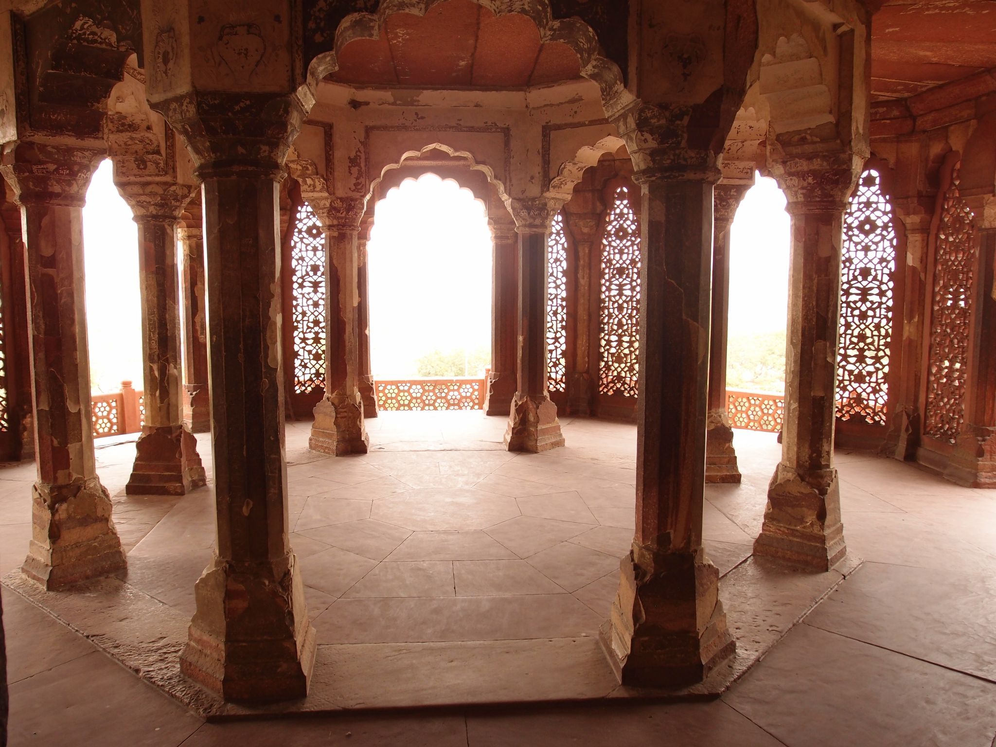 -Visite du Fort Rouge, situé à Agra en Uttar Pradesh (Inde). Recouvrant une surface de 380 000 mètres, c'est le plus grand fort de l'Inde. Il a été classé au patrimoine mondial de l'UNESCO en 1983. Les murs d'enceinte, en grès rouge, sont hauts de 21 mètres et longs de 2,5 km.
